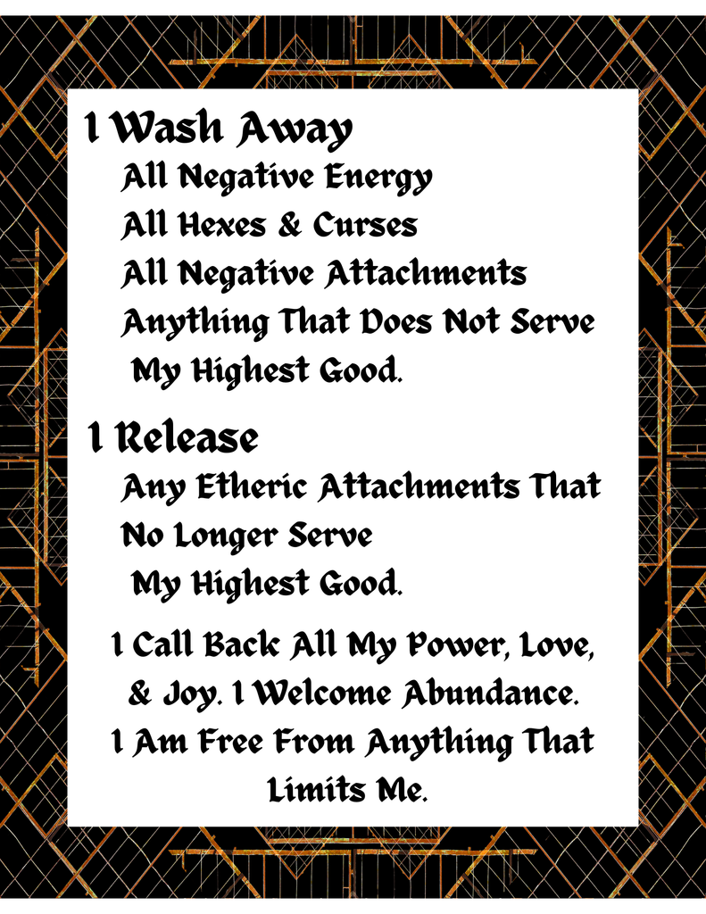 Cleansing Bath Kit handcrated by Granny Maggie clears away negative energy and attachments, even the effects of dark magick such as curses and hexes. Cleanse yourself and take your power back. Kit contains herbal,resin, & salt bath blend with two muslin drawstring bags. The bath blend may be used in the tub, or steeped in boiled water like a tea to be poured overvthe body at the end of a shower. Kit contains two black chime size candles with a pentagram candle holder. Magick chant sheet is included. Kit has enough bath blend for at least two cleansings.