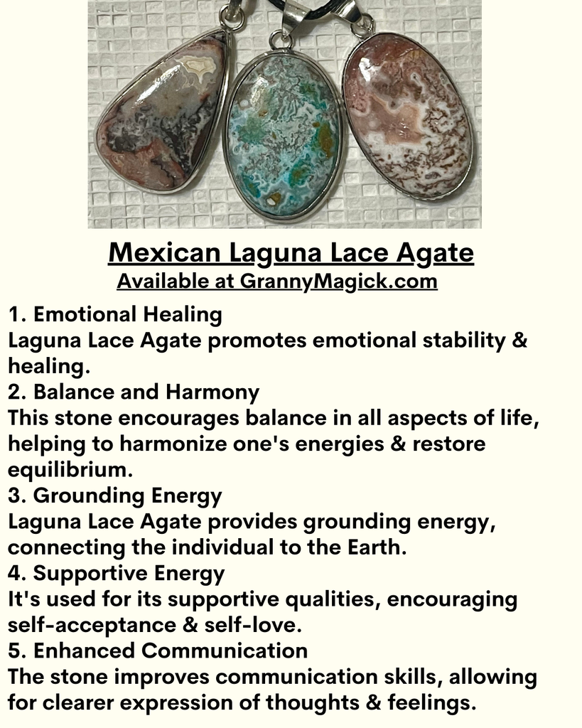 MXL11 Mexican Laguna Lace Agate Heart Pendant is set in 925 Silver Setting, & hangs from an 18” stainless steel chain.