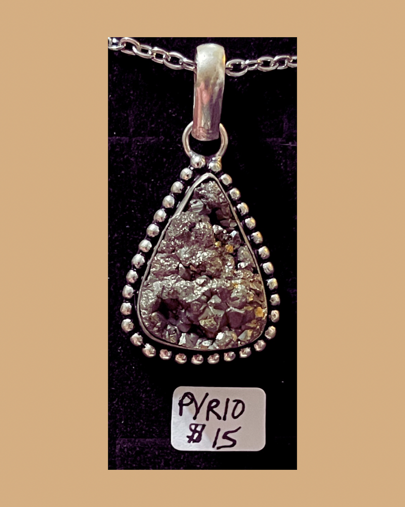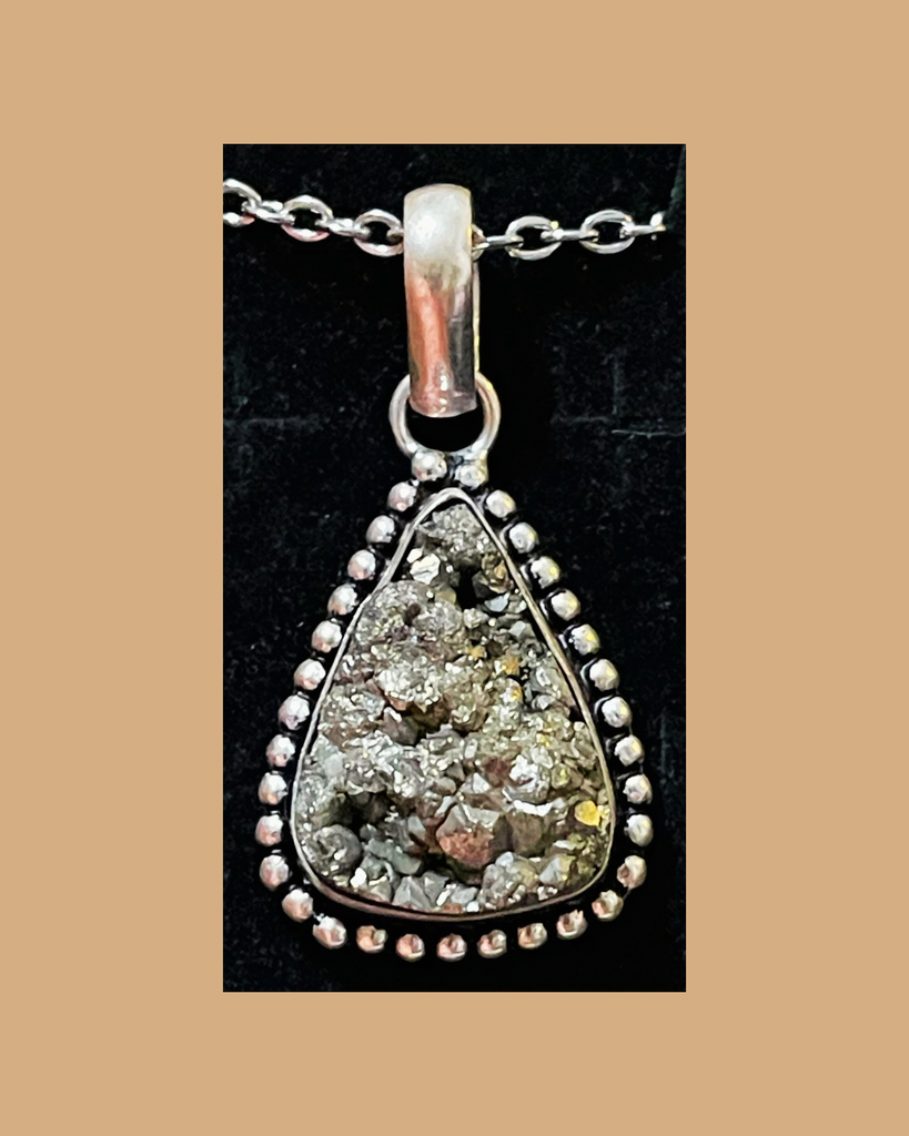 Pyrite Pendant hangs from an 18” Stainless Steel chain.